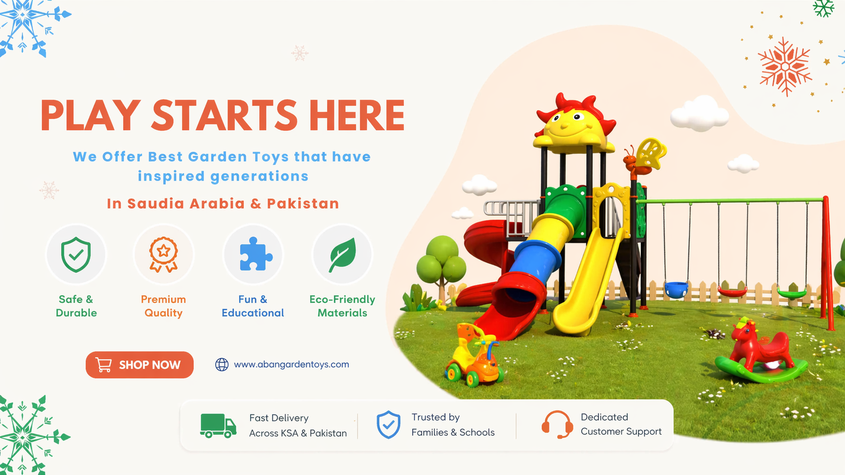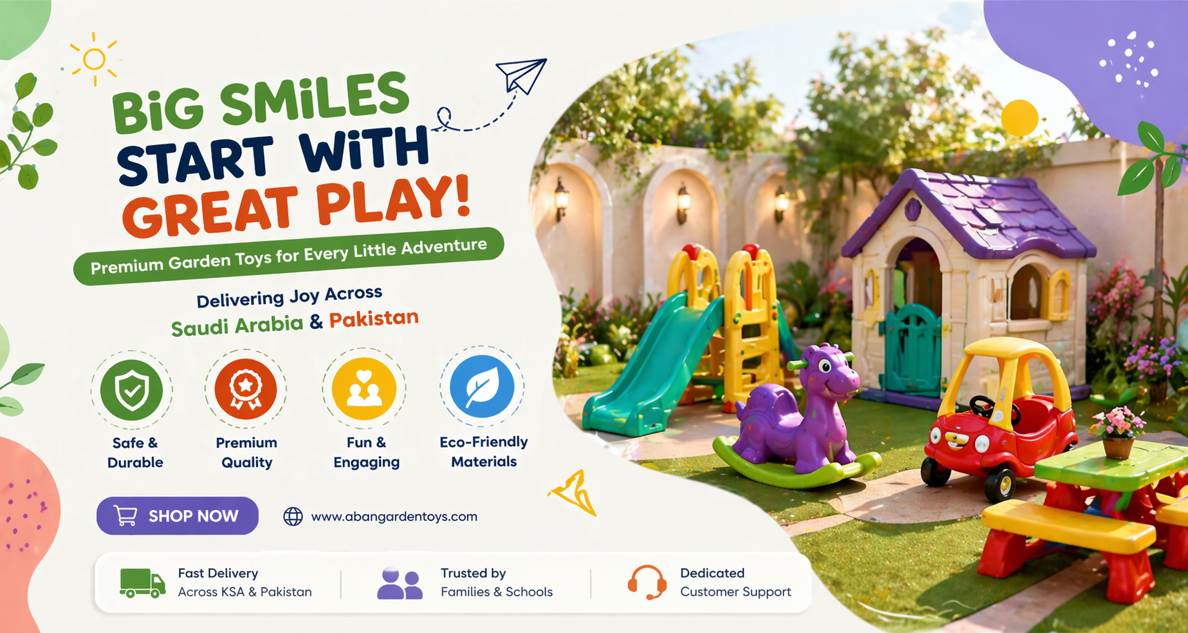 We are known as one of the best garden toy brands because of our good quality and fair prices. Parents from all budgets can easily buy our outdoor toys for their children. Price is never a problem when you choose Aban Garden Toys for safe and fun play.